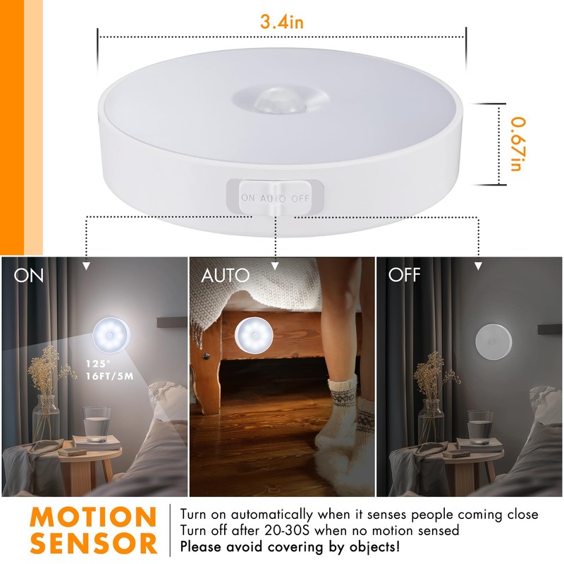 • 8 LED Beads & 125° Sensor Range: EverBrite puck lights offer superior performance, each light includes 8 built-in lamp beads, which provide sufficient brightness, covering up to 125° and reaching up to 16ft