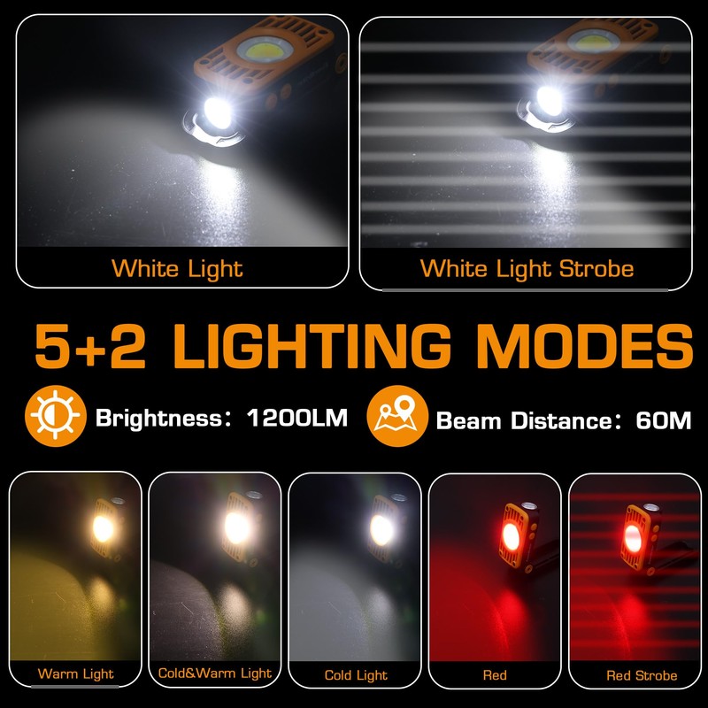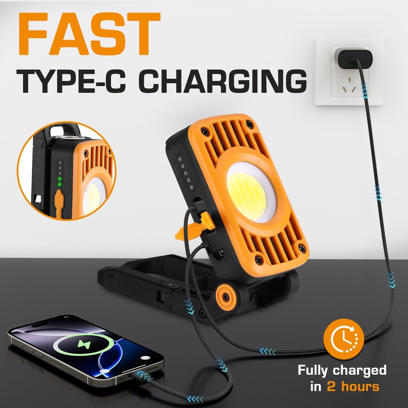 - Power Bank & Power Indicator Light: This rechargeable work light includes an output function that allows you to charge your devices in emergencies. When the light is on, the indicator displays the remaining battery level, ensuring you're always aware of when a recharge is needed.