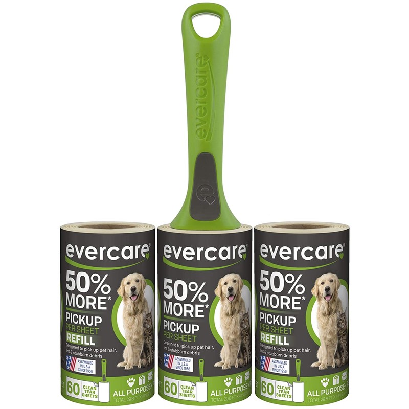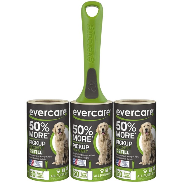 Evercare Pet 50% More Pickup Per Sheet, Lint Roller Combo Pack, 180 Sheets (617132) (Packaging & color May Vary)