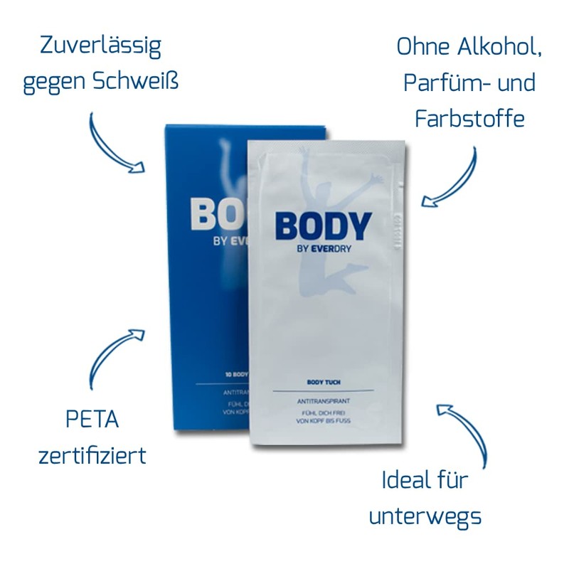EVERDRY Antiperspirant Body Wipes, Pack of 10, Ideal for Travelling, Body and Face, Against Heavy Sweating