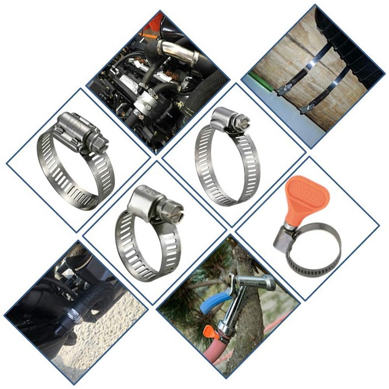 • 《Save Time & Money》These stainless steel hose clamps can be installed on hose joints or pipe fittings to prevent liquid leakage. High quality hose clamps can save your time and money on costly repairs of the pipe.