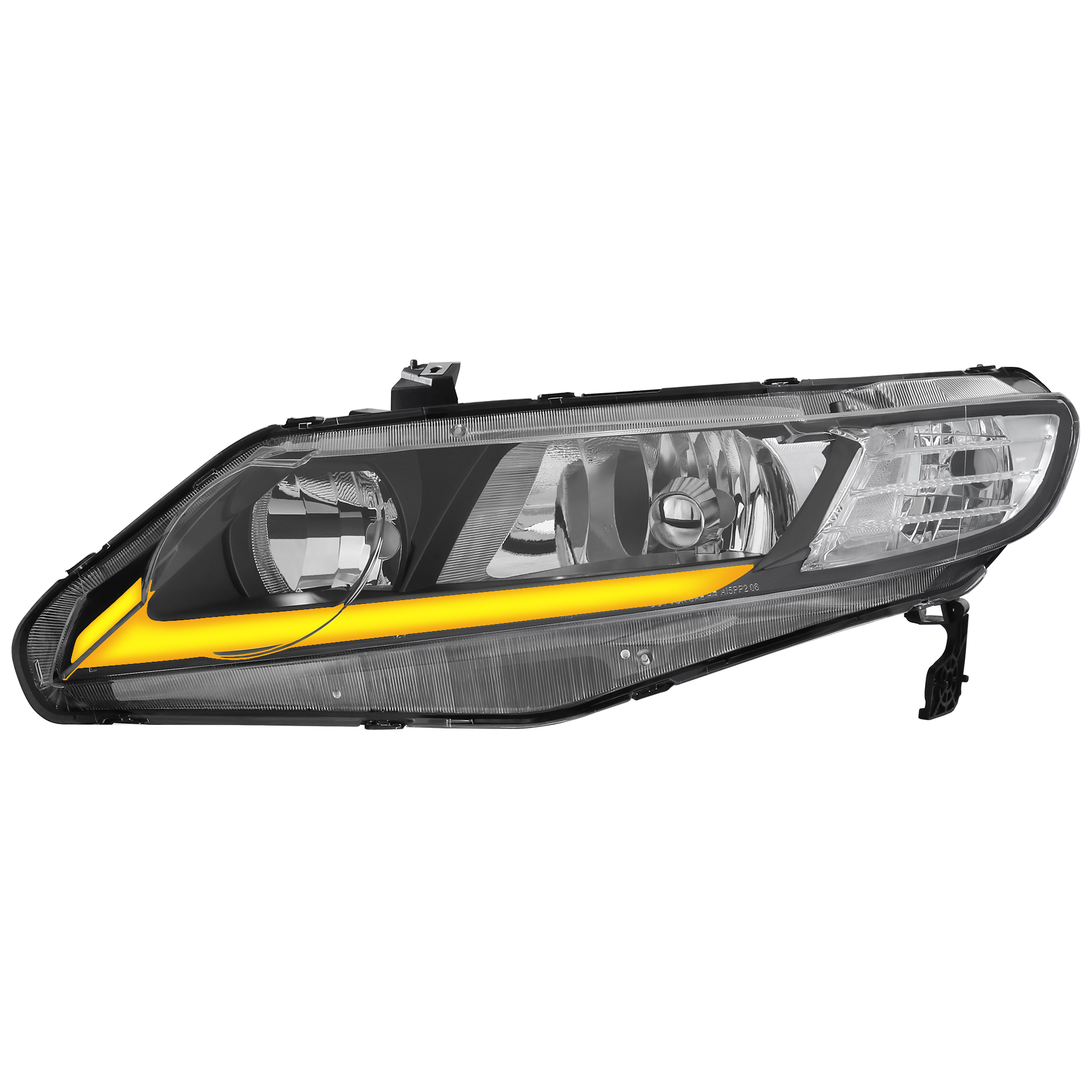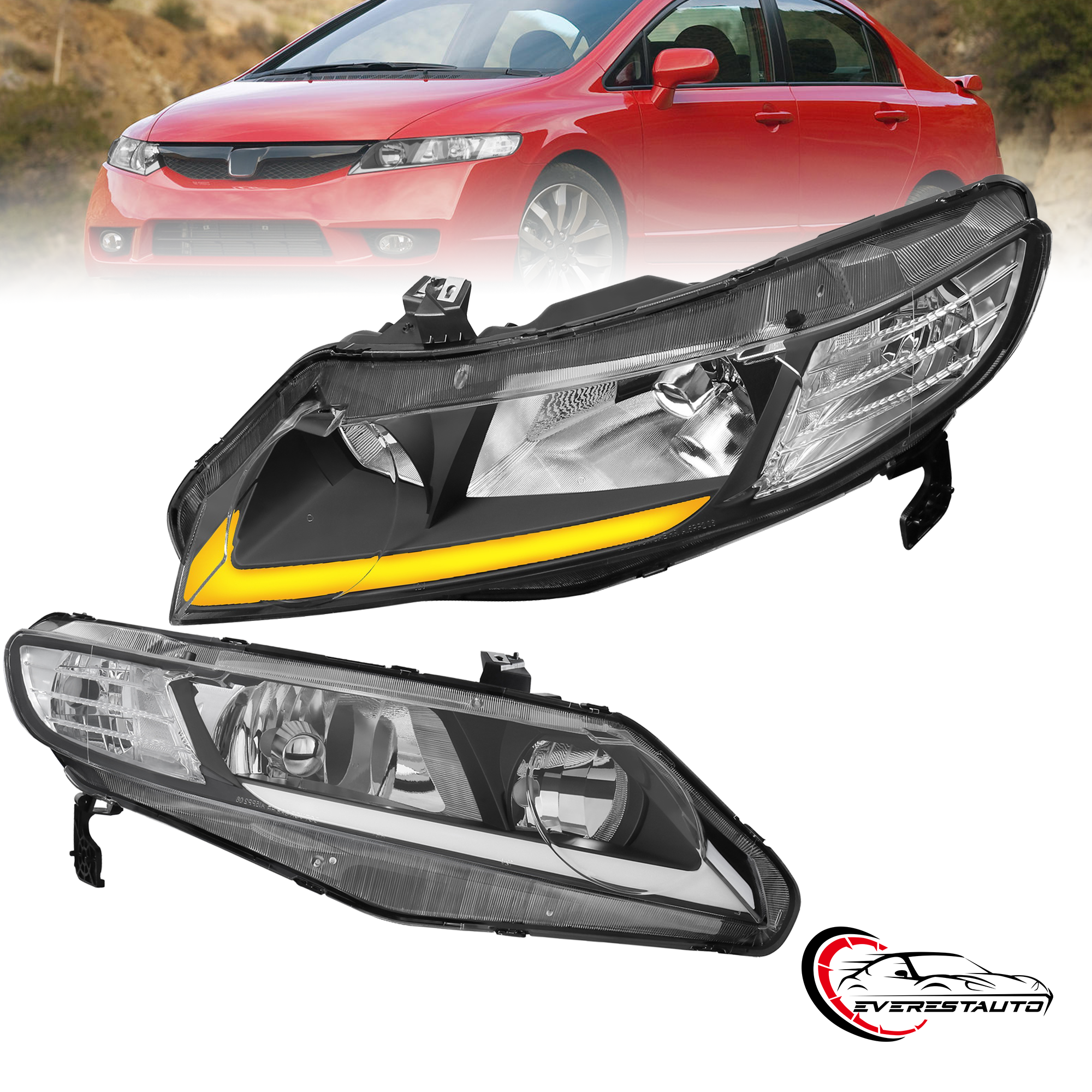 EVERESTAUTO Pair LED DRL Sequential Signal Headlights Lamps For 06-2011 Honda Civic FA Sedan