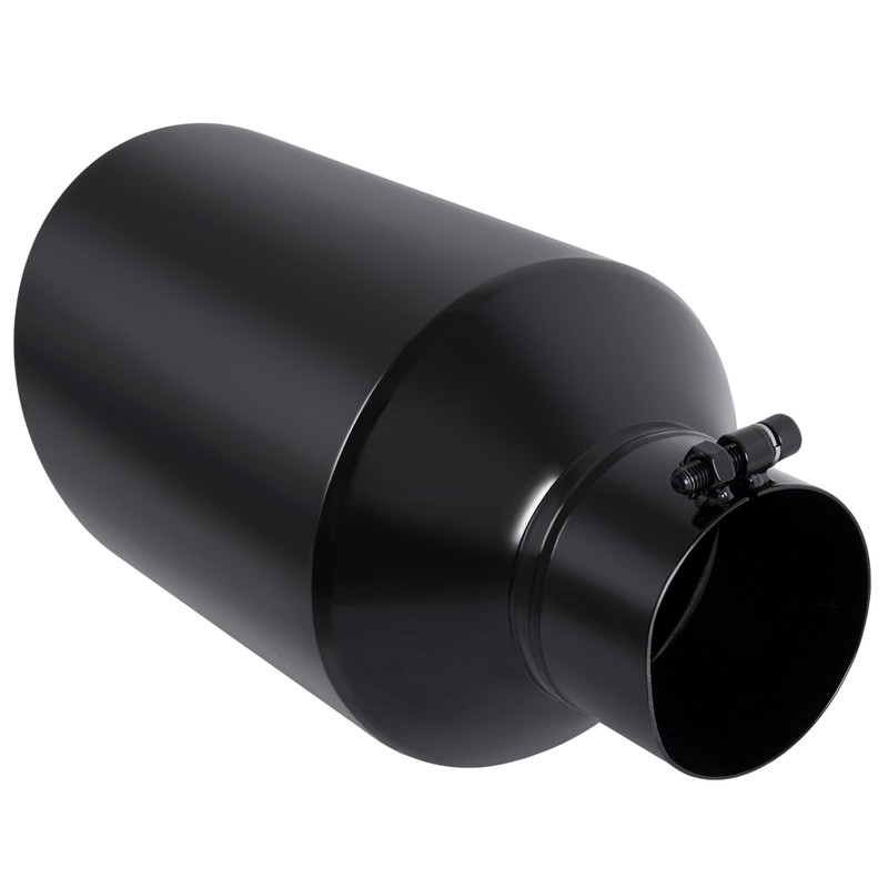 - 【Tailtip Dimension】 4"(inlet) x 8"(outlet) x 15"(long length). Universal fit for vehicles with 4-inch diameter exhaust pipe outlets.