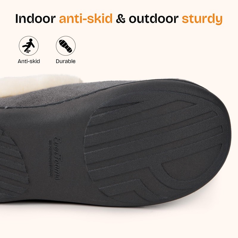 EverFoams Women's Micro Suede Cozy Memory Foam Winter Slippers with Fuzzy Faux Fur Collar and Indoor Outdoor Rubber Sole Dark Grey,7-8 US