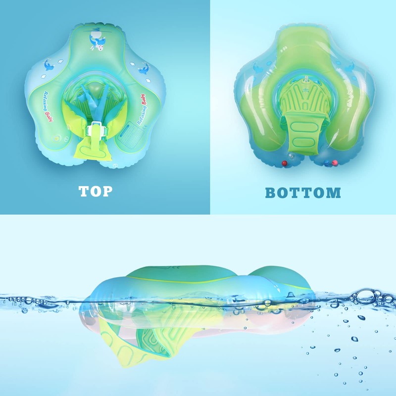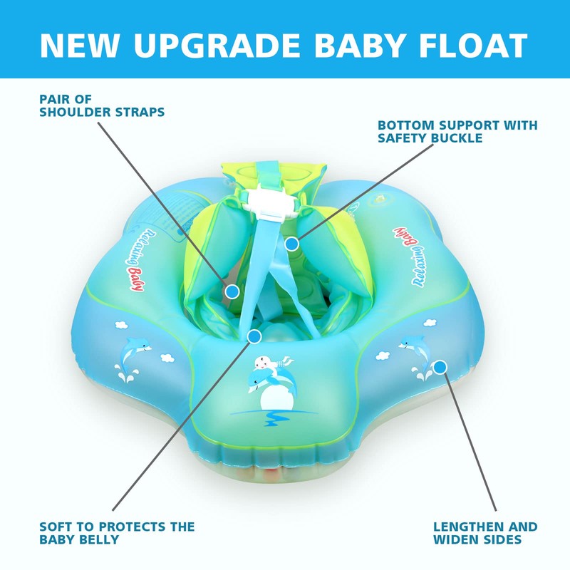 - our baby swimming ring is designed to help you and your baby enjoy the water for longer. It allows them to float freely and get used to the feel of the water. It has reliable buckles and easy to adjust strap. The center piece protects the baby belly, the front protects their little face from actually touching the water, the back strap protects baby from sliding out.