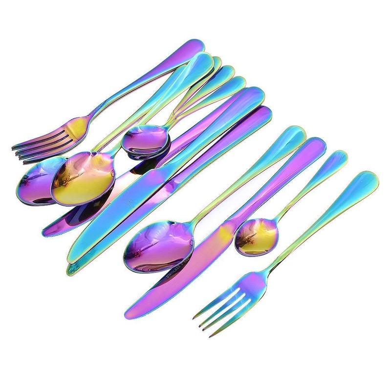 EVERGD Rainbow Cutlery Set, 16-Pieces Stainless Steel Tableware Set Colorful Romantic Dinner Set Rainbow Flatware Dinnerware Set