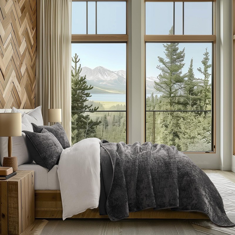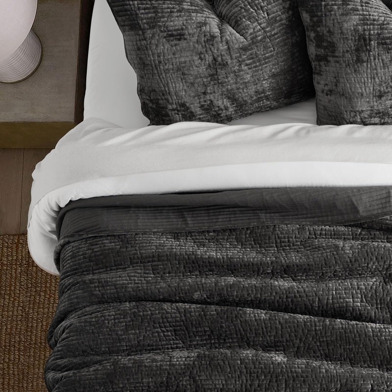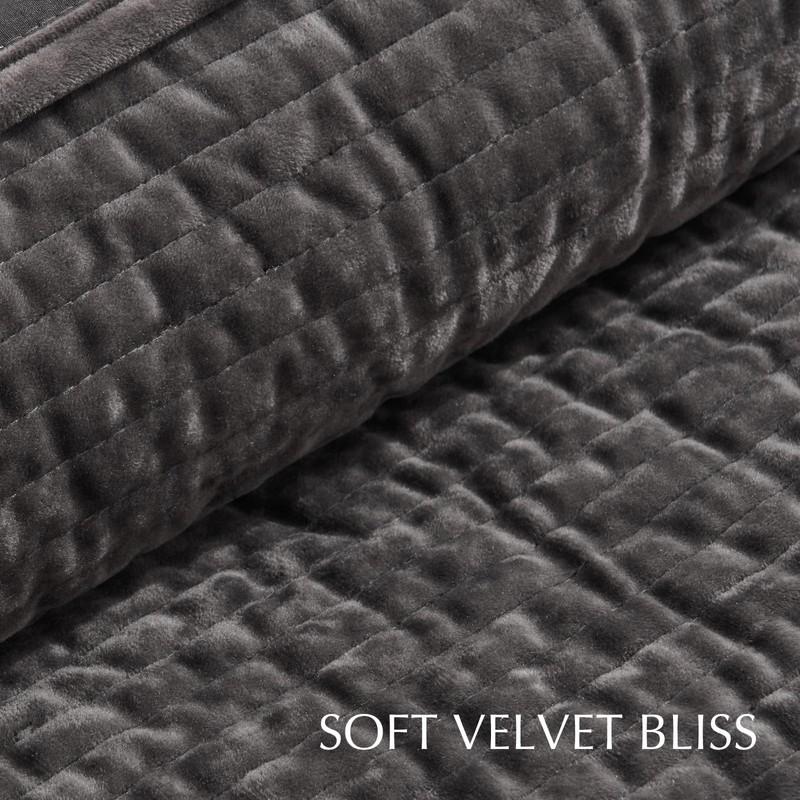 - TIMELESS ELEGANCE QUILT - Elevate your bedroom decor with our channel velvet quilt set. Crafted to perfection, the subtle shimmer of the unique crushed velvet material evokes a captivating sense of luxury and sophistication. Its striking allure ensures it becomes the centerpiece of any room, whether as a standalone feature or layered with other textures, infusing your space with elegant refinement.