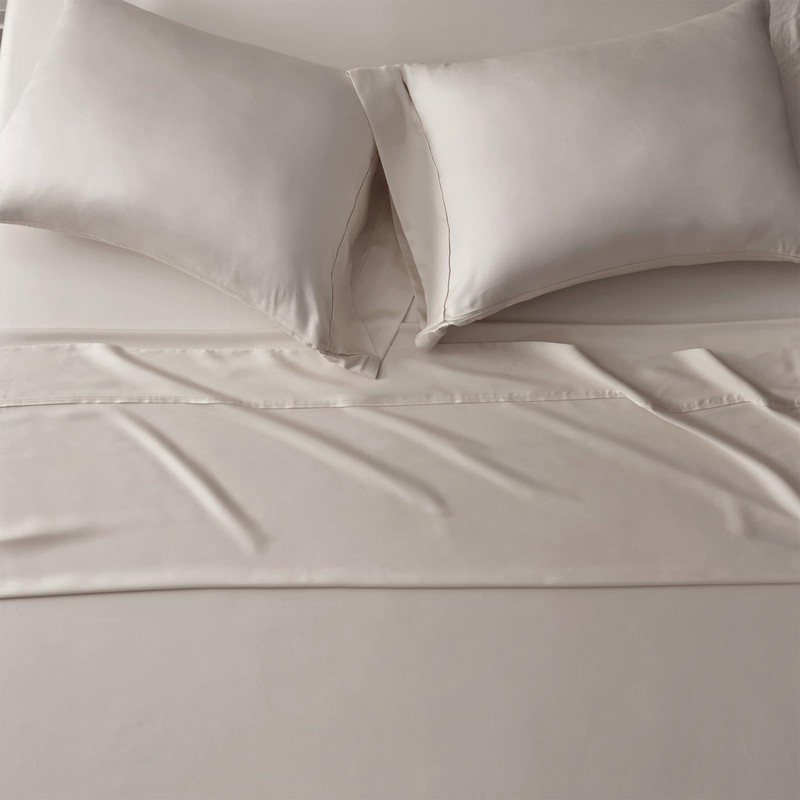 EVERGRACEHOME Cotton Tencel Cooling Sheets Set Queen Size for Hot Sleepers, Luxe Silky Soft Organic Eucalyptus Lyocell Bedding 4-Piece Set, 1 Flat & 1 Deep Pocket Fitted Sheet, 2 Shams, Beige Sand
