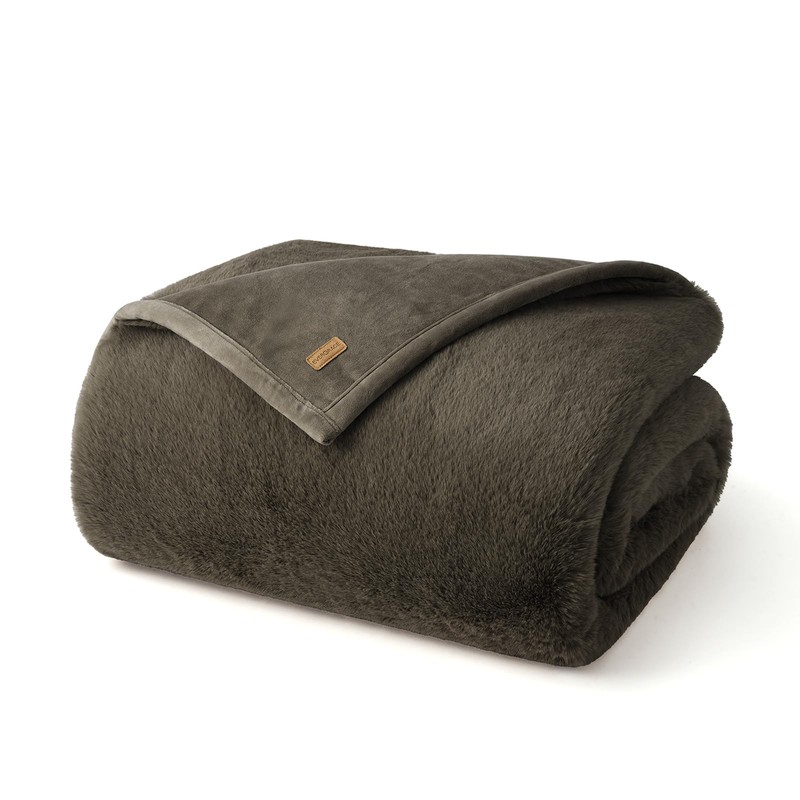 EVERGRACEHOME Luxury Soft Faux Chinchilla Fur Throw Blanket for Couch, Warm Thick Heavy Winter Throw Blanket 1220GSM for Bed, Fluffy Cozy Mink Blanket with Reversible Velvet, Smoky Sable, 50"x60"