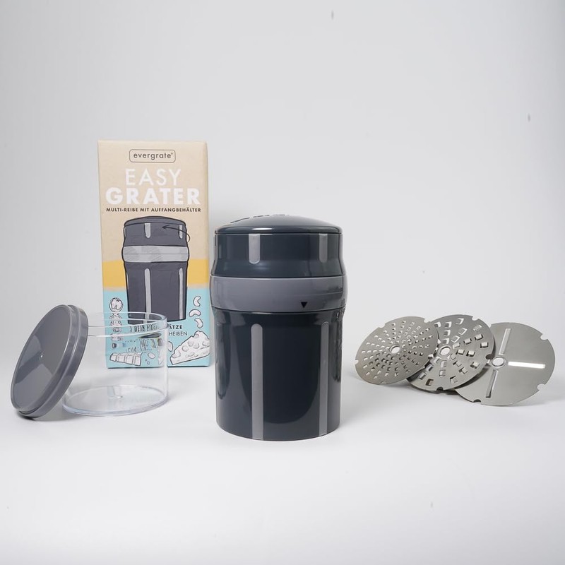 evergrate® EasyGrater Panther Multifunctional Kitchen Grater with Rotating Mechanism, 3 Stainless Steel Grater Inserts, Collection Container, for Cheese, Chocolate, Vegetables & More, Dishwasher Safe,