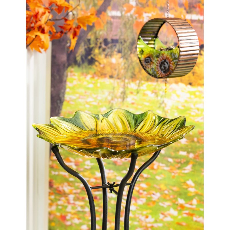 Evergreen 18" Hand Painted and Embossed Shaped Bird Bath, Sunflower