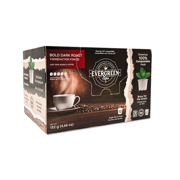 Evergreen Compostable Single Serve Coffee Pods - Dark Roast Bold Blend - 100% Arabica Beans (72 Count)