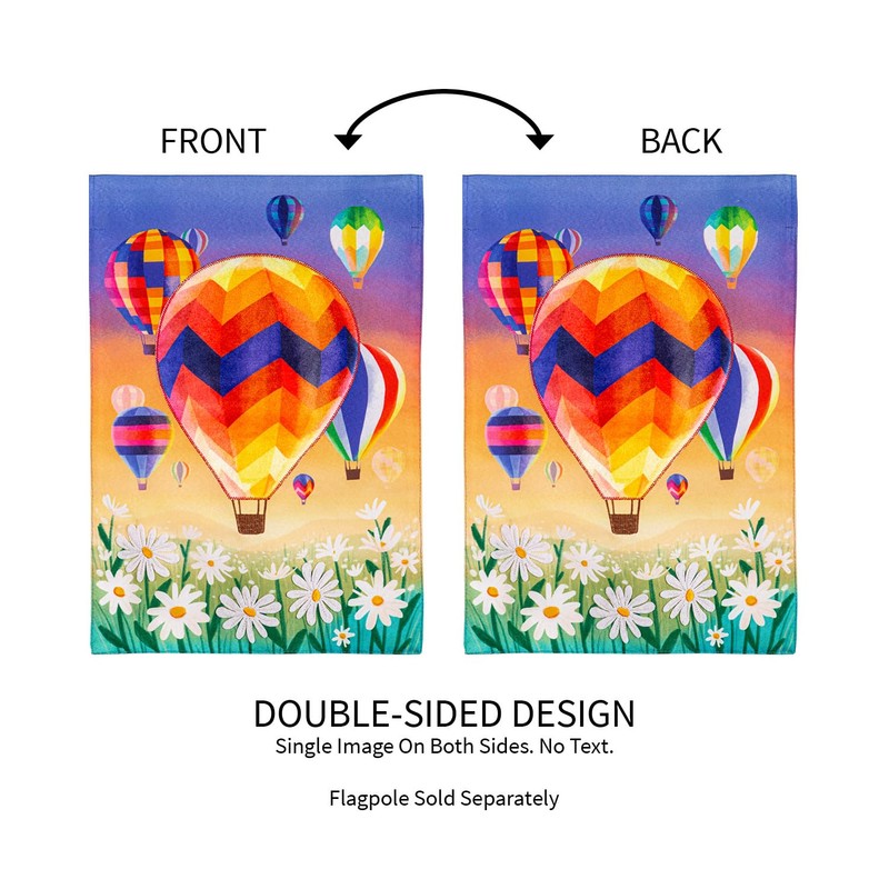 Evergreen Flag Hot Air Balloons Linen Garden Flag | Welcome Garden Flag 12x18 Double Sided | Small Garden Flags For Outside | Outdoor house Flags for All Season