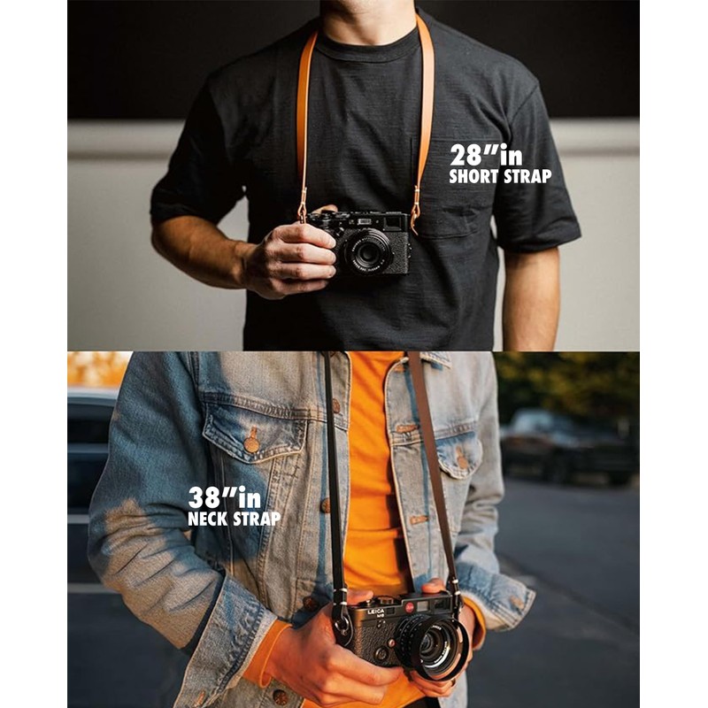 - Evergreen Minimalist Camera Strap – Discover the versatility of our best-selling leather camera strap, available in both 38” for the classic neck strap feel, and 28” for a shorter, higher chest placement. The 38” offers the traditional experience that camera companies have relied on for 70 years, while the 28” provides a unique angle, making your camera even more accessible for capturing spontaneous moments. Choose the size that suits your style and photography preferences.