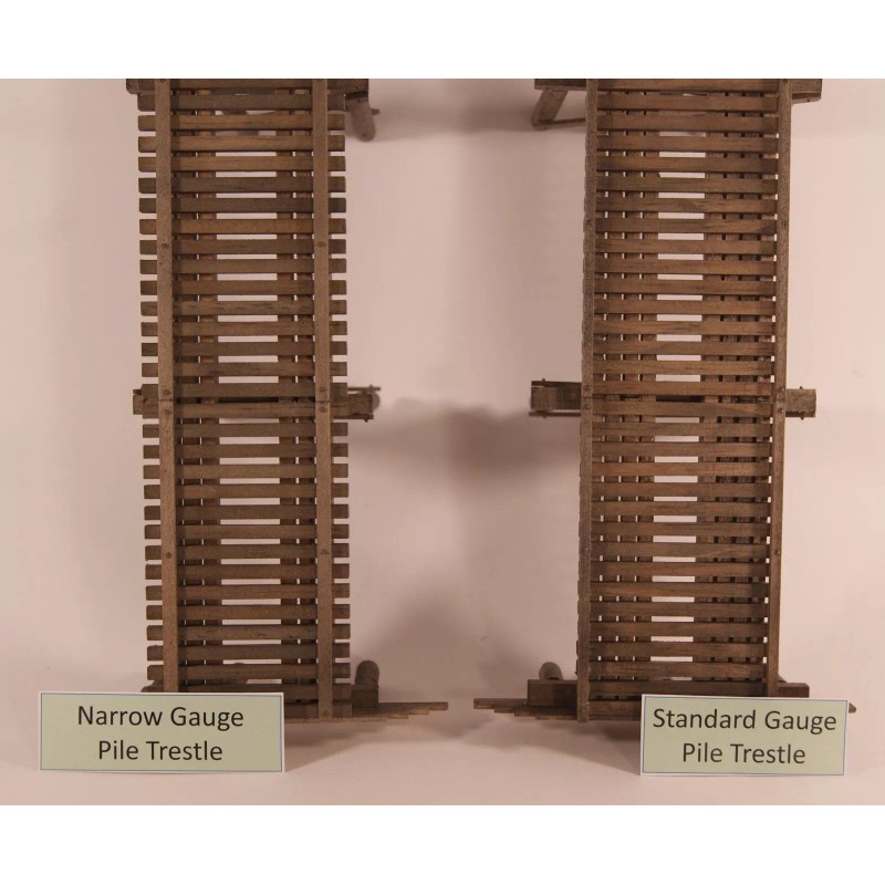 The design is closely based on the Denver & Rio Grande Railroad Co. Standard Pile Trestle Plans for Narrow Gauge Lines (Adopted Feb. 1907). A trestle is an important part of any railroad and is used by virtually every line in the world. This 48’ long Pile Trestle will work in a wide variety of applications, either on a layout or as part of a diorama, whenever you need your trains to step gracefully over small ravines, hills or whatever depression you may want to cross. This Pile Trestle can be added to an existing layout by simply adding a small gully or ravine, thus providing some additional items for your visitors to look at. The actual dimensions are 48 ft long x 10.0 ft wide. The height will depend on which Bent you decide to use. Bent Templates are provided to achieve a 7 ft, 10 ft or 14 ft tall trestle (as measured from the ground to the top of the ties). This allows the builder to semi-custom build the trestle bents to their unique location.