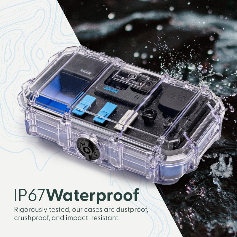 - The Evergreen ToughBox Protective Case for GoPro – Engineered for adventure seekers who demand top-tier lockable protection – it’s dustproof, watertight, and shock-resistant – ensuring gear stays safe no matter where you go. The 100% high-impact polycarbonate construction is precision designed in Southern California and tested to last. Lightweight and compact, it’s the perfect companion for the next adventure, ensuring your GoPro is always ready for the action.