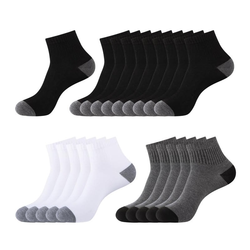 EverKnits 20 Pairs Ankle Socks For Men - Mens Socks Size 10-13 Crew Quarter Sock in Bulk