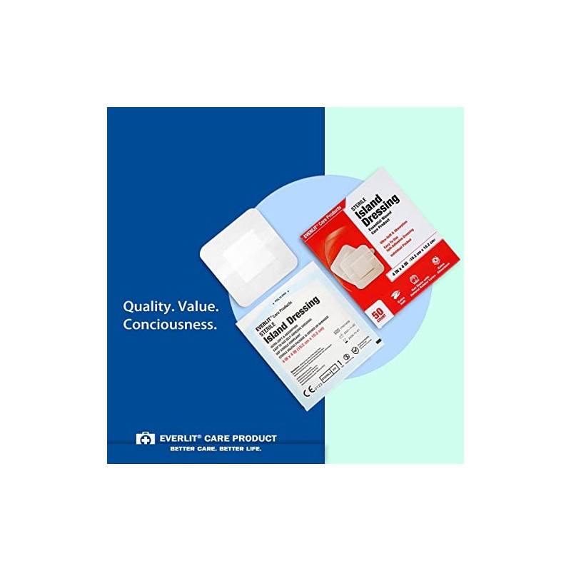 - ✅PREMIUM QUALITY WOUND CARE – The Everlit Island Dressings provide the perfect balance of non-adherence and exudate migration. The non-adherent, highly absorbent center core minimize skin macerations, absorbs excess wound fluid, cushions and protects wound site against further trauma, infection, and external contaminants.
