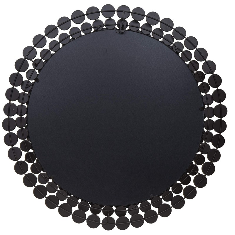 this round wall mirror is constructed of metal and glass bead accents that add texture to your wall decor.