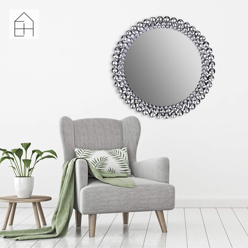 add glamorous sophisticated style to your home decor with this round jeweled mirror.