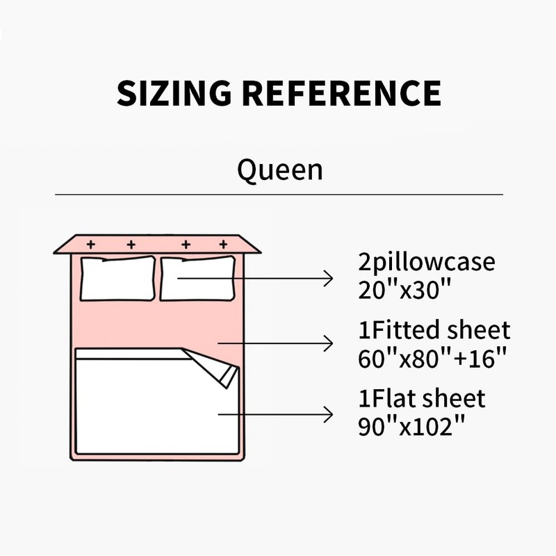 - QUEEN SIZE SET: This complete 4-piece set includes 1 fitted sheet (60"x80"), 1 flat sheet, and 2 envelope-style pillowcase.Features fitted sheets that have a fully elasticized border to ensure a snug fit for any mattress up to 16 inches thick. while reinforced double-stitched hems and anti-pilling technology ensure long-lasting durability without shifting or fraying.