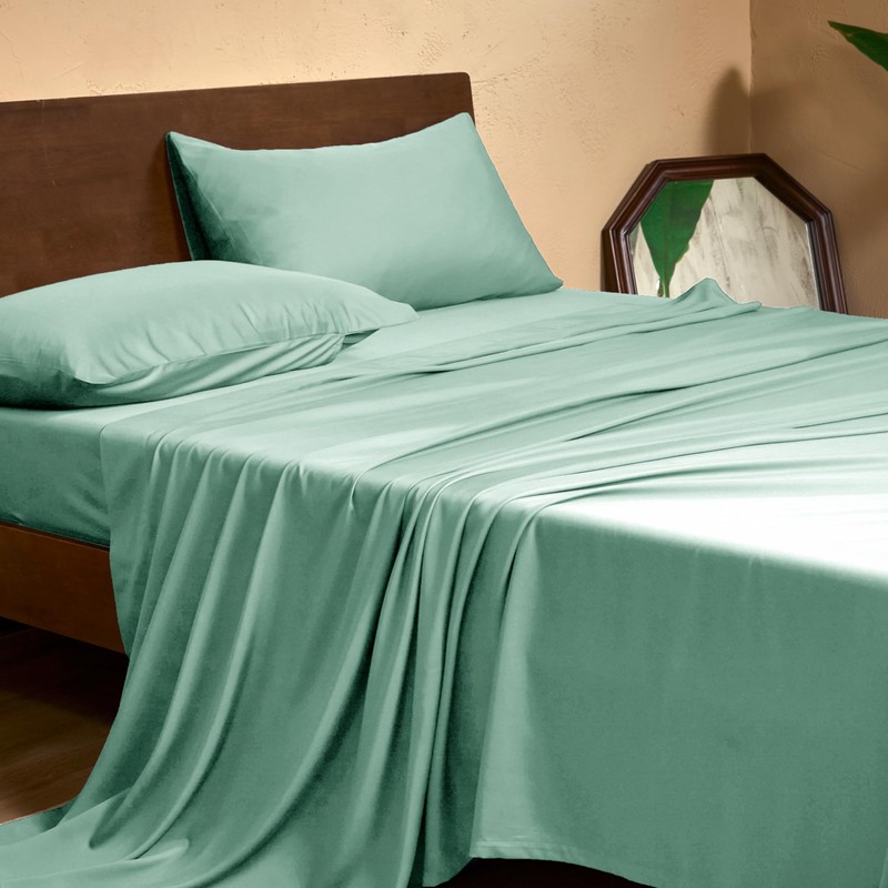 EVERLY Queen Sheets Set,Luxuriously 400 Thread Count Organic Viscose Derived from Bamboo Bed Sheet,Cooling Sheets for Queen Size 4 Piece Deep Pockets Bedding Sheets &Pillowcases-Water Green
