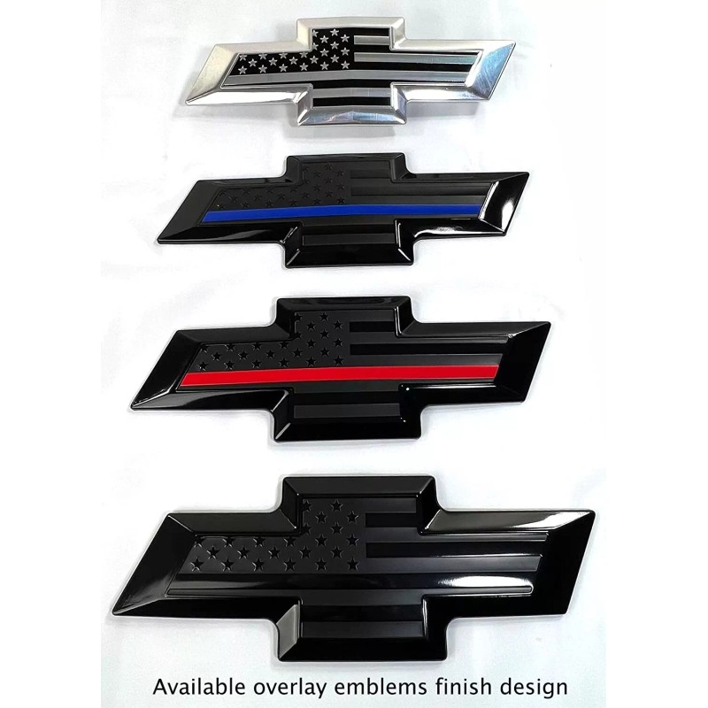 - Front and Tailgate set, Overlay Black American flag Emblem, Compatible with 2016-2018 Silverado part number Rear - 22786435 , Front - 23236301