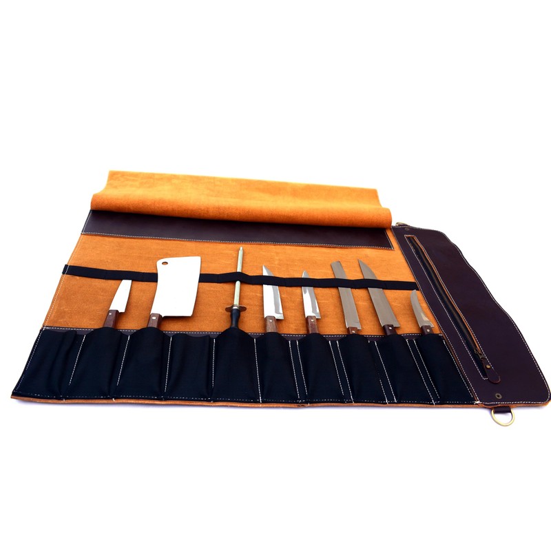 EVERPRIDE Brown Leather and Suede Knife Roll