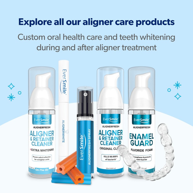 - The Original Wearable Aligner Cleaner: Our wearable AlignerFresh Original Clean formula gives you complete aligner and oral health care in one convenient mess-free application. Simply add the cleaning foam to your trays, place them directly into your mouth, and go about your day D no brushing, rinsing, or soaking necessary. Getting an orthodontist-recommended clean is easier than ever!