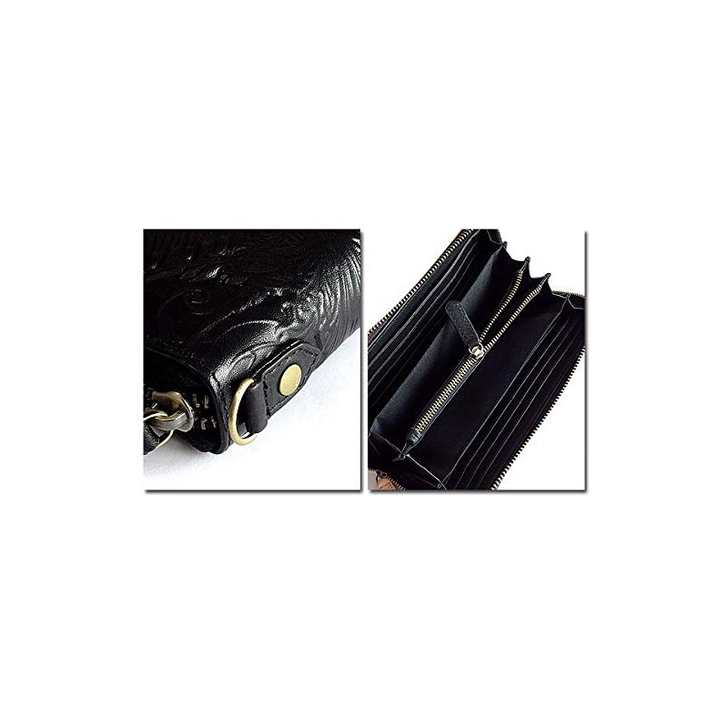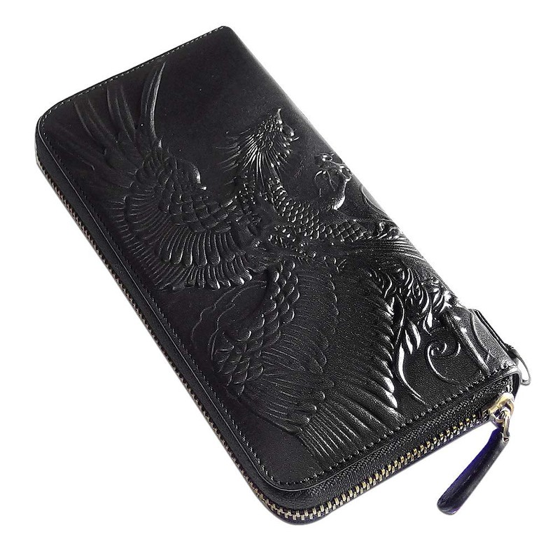 EVERSOUL Long Wallet, Phoenix Embossed Wallet, Genuine Leather, Cowhide Leather, Zip Around, Black