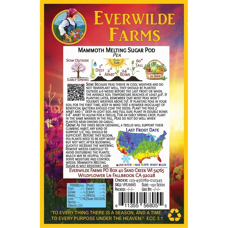 Everwilde Farms - 100 Mammoth Melting Sugar Pea Seeds - Gold Vault Jumbo Seed Packet