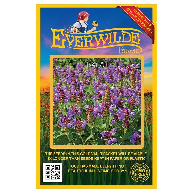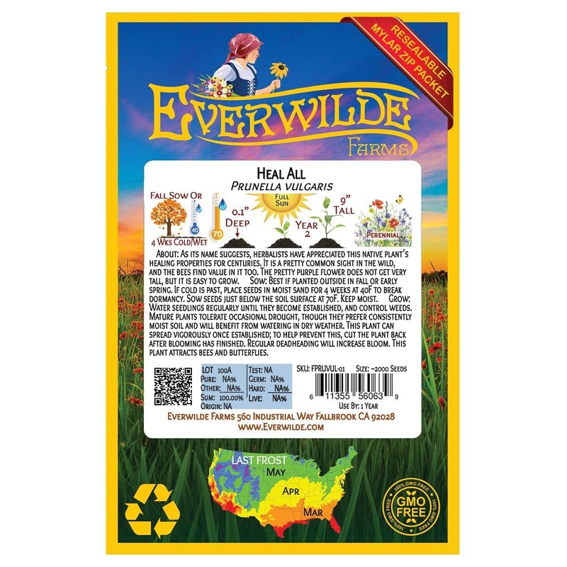 Everwilde Farms - 2000 Heal All Native Wildflower Seeds - Gold Vault Jumbo Seed Packet