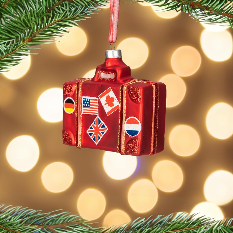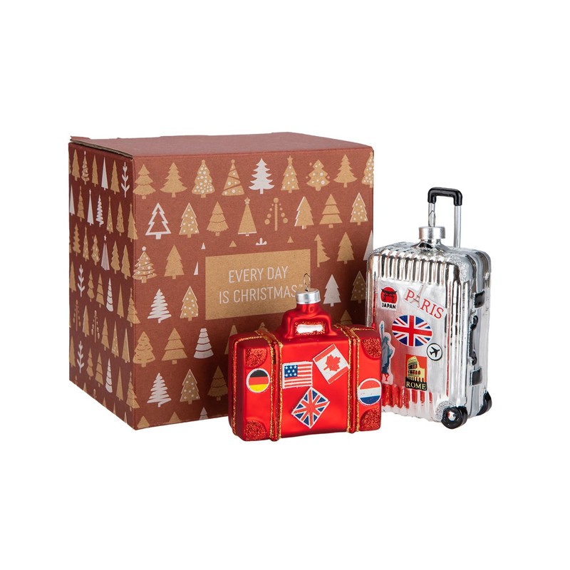 Every Day is Christmas Glass Blown Ornaments Cute Hand Made Figurines Tree Decoration, Suitcases Set of 2