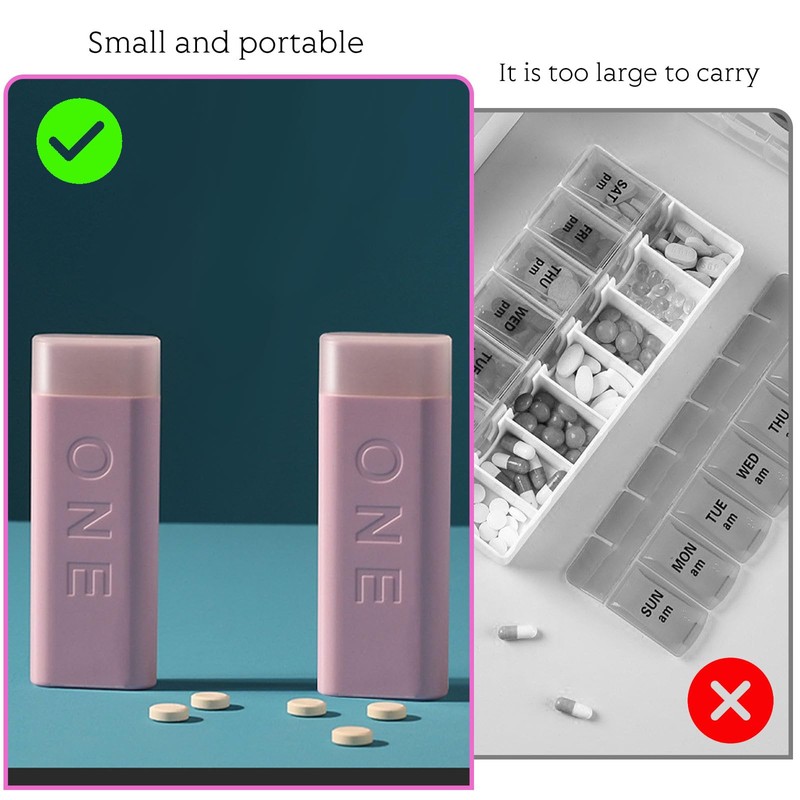 - COMPACT AND PORTABLE:Our small pill box is compact, measuring 4.8 x 1.7 inches, It can be easily placed in your pocket or bag to meet your medication needs at any time.