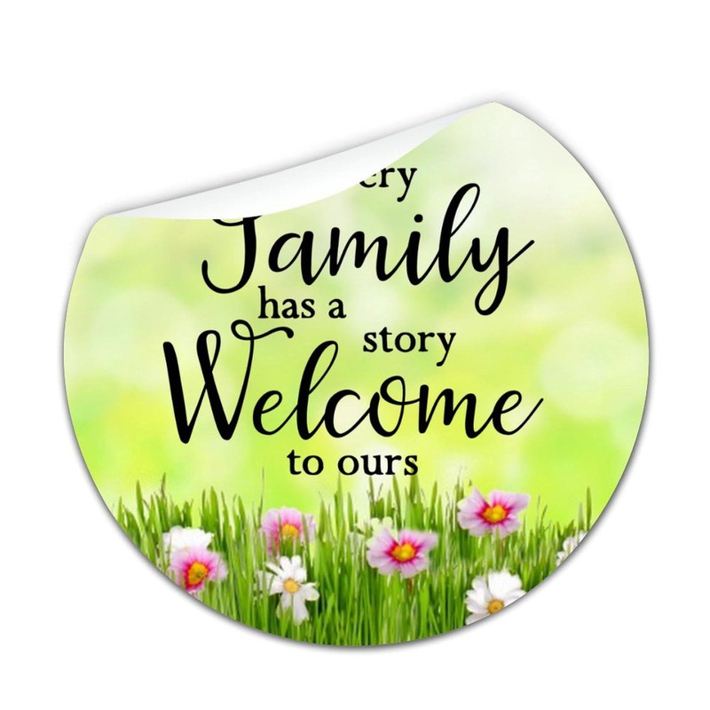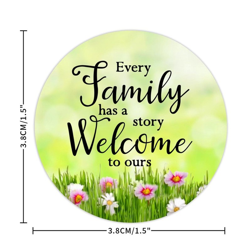 Every Family Has A Story Welcome to Ours Round Label Sticker 3in Positive Lettering Saying Circle Decals for Laptop Computer Cup Envelopes Seals Water Bottle Backpack 100pcs