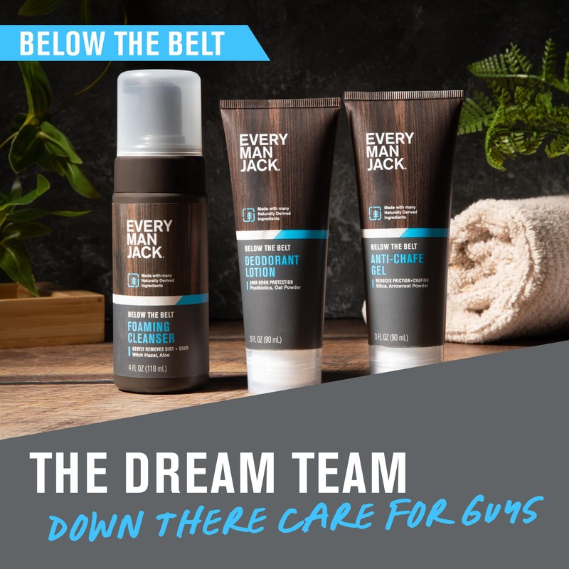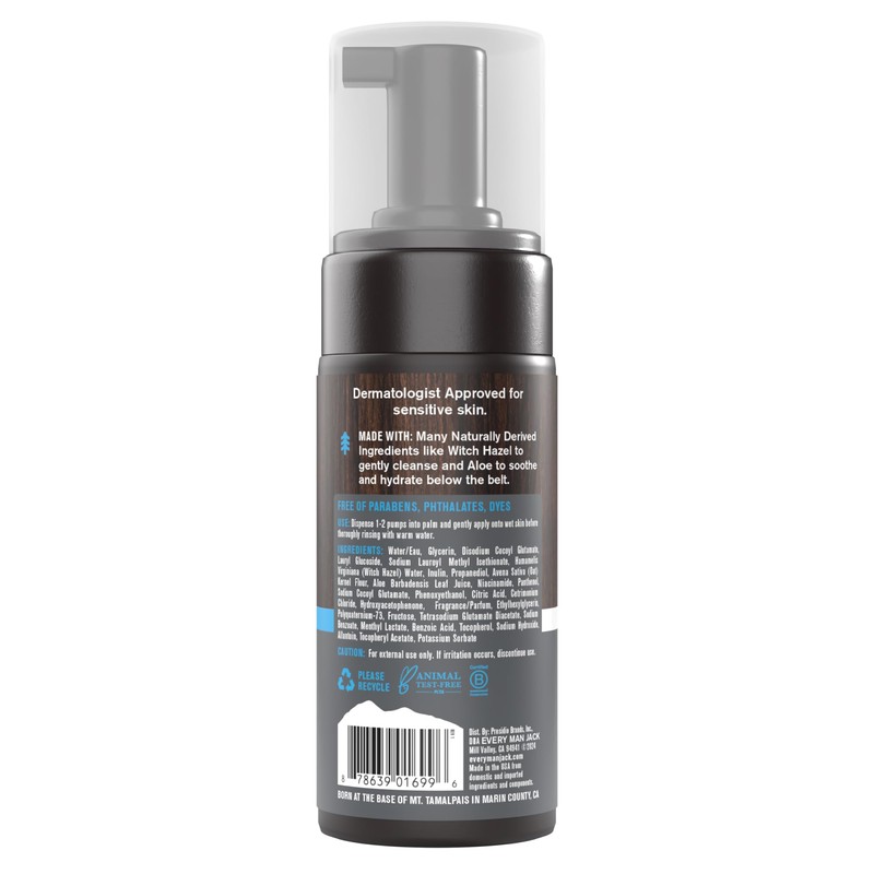 Every Man Jack Every Man Jack Mens Foaming Groin Wash - Gentle Cleanser for Below The Belt - Made w/ Naturally Derived Ingredients like Witch Hazel & Aloe Vera - 4 Fl Oz (1 Pack)