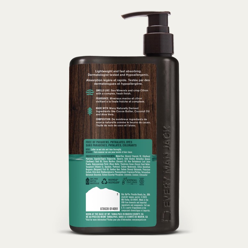 - OUTDOOR INSPIRED SCENTS: Moisturize the manly way with ocean minerals and bergamot that'll leave you smelling like fresh ocean spray and a subtle hint of citrus.