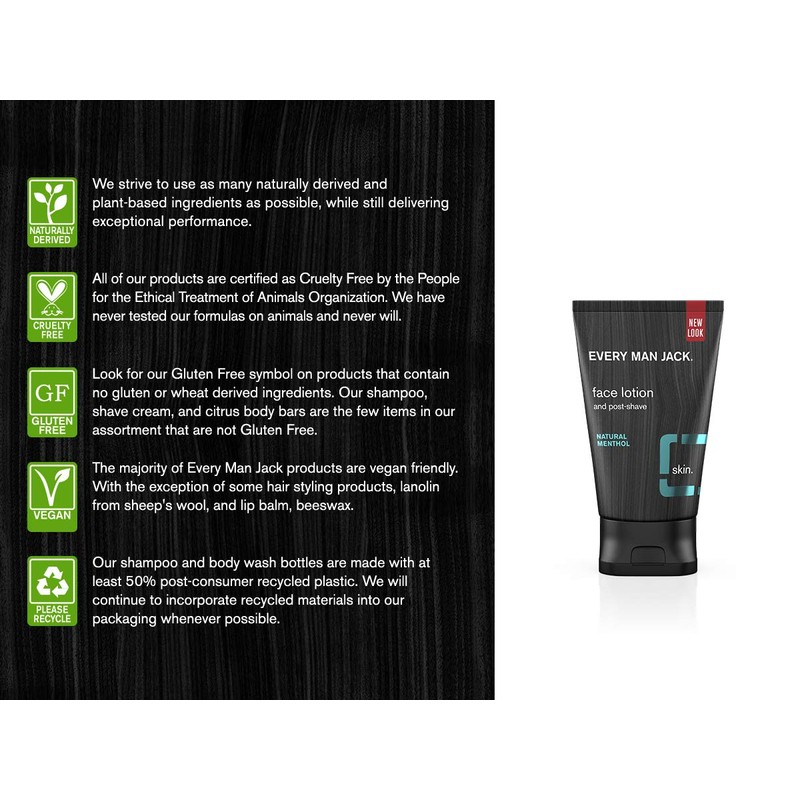 - MADE NATURALLY: Every Man Jack strives to use as many naturally derived and plant-based ingredients as possible, while still delivering exceptional performance. No Parabens. No phthalates. No Dyes. No GMOs.