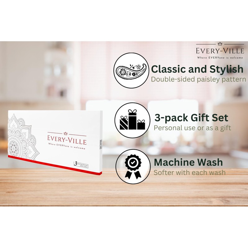 EVERY-VILLE Where EVERYone is Welcome 3 Pack Red White Blue Bandana for Women Men Gift Packaging - Cowgirl Cowboy Accessories Scarf Headband Neckerchief - Large Paisley Hair Face Covering