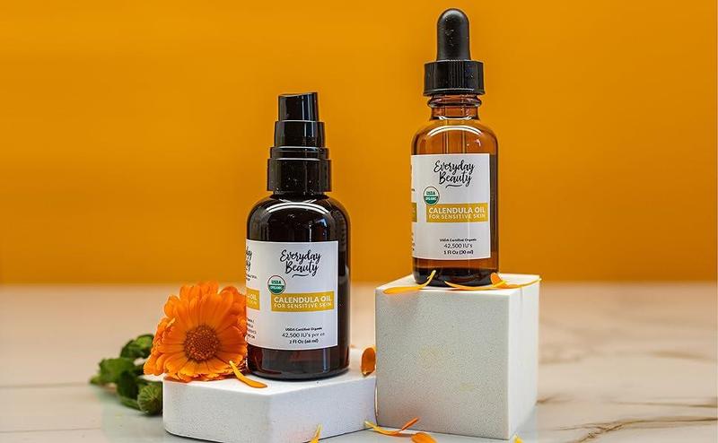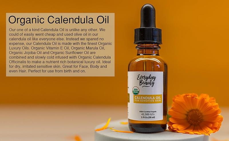 Everyday Beauty Organic Calendula Oil For Sensitive Skin - USDA Certified Natural Plant Based, Lightweight & Unscented Gentle Soothing Oil For Sensitive Skin - For Face, Skin & All Over - 1 Fl Oz Glass & Dropper - Size: 2.02 Fl Oz (Pack of 1)