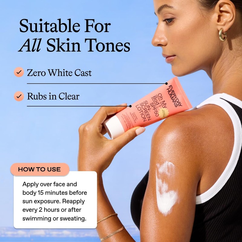 EVERYDAY HUMANS Everyday Humans Oh My Bod SPF50 Sunscreen Body Lotion 3.4 oz | Travel Ultra Light & Invisible SPF | Sweat & Water Resistant | Doesn't Sting Eyes | UVA/UVB Broad Spectrum Protection | Oxybenzone Free