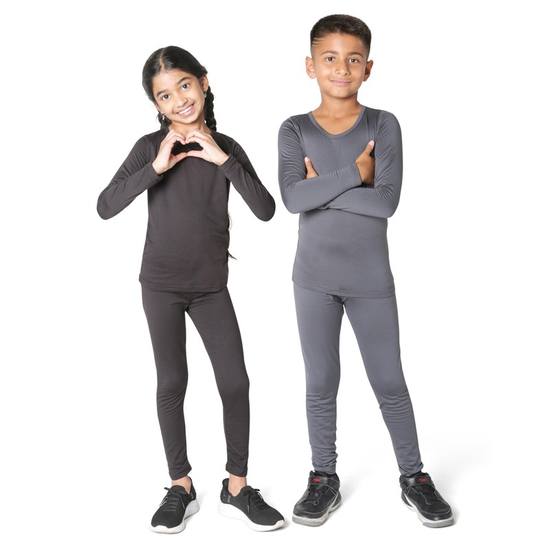 - SUPER WARM AND COZY: Lined with luxurious microfleece, the dark gray thermal long-sleeve shirt and pants set is the body warmer set he needs for cold weather. This flexible kids’ base layer set keeps him warm in all his activities from snowball fights with his friends to winter sports like snowboarding and skiing.