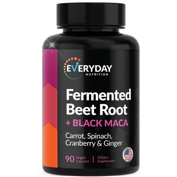 EVERYDAY NUTRITION Organic Fermented Beet Root, Black Maca, Carrot, Spinach, Cranberry, Ginger |Enhanced Overall Health for Women & Men | Made in USA | 90 Veggie Capsules