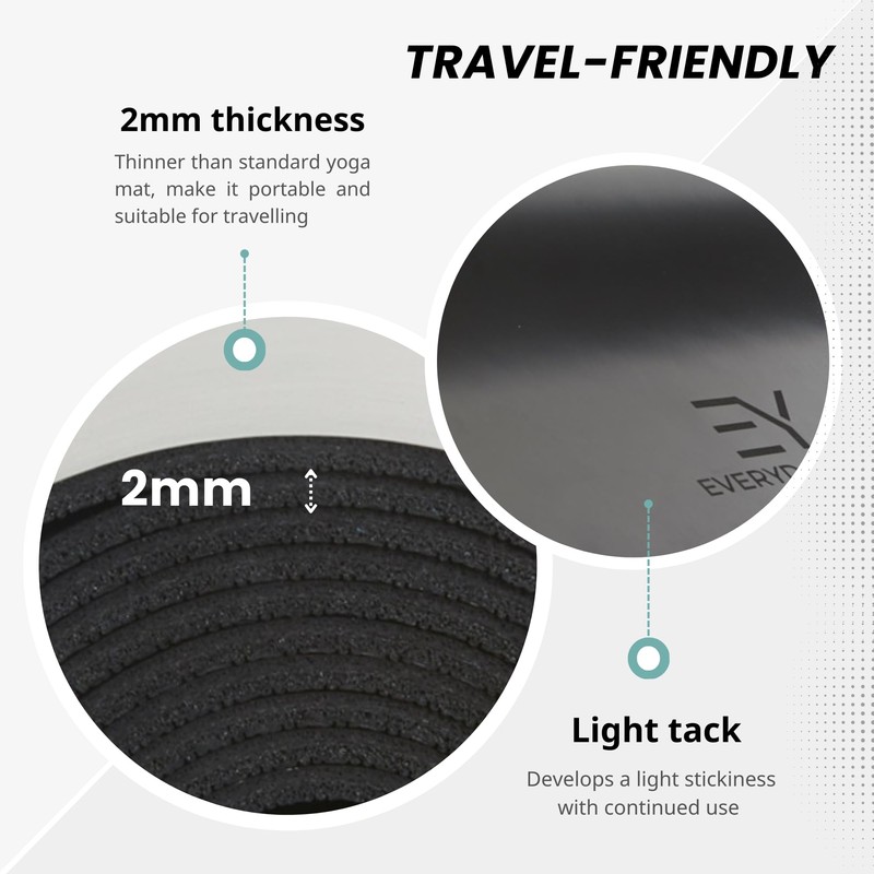 Everyday Yoga Mat Premium Edition, Non-Slip Exercise & Fitness Mat - Eco-Friendly, Anti-Tear, 3-5mm Thickness for Yoga, Pilates & Floor Workouts Black Grip travel - 2mm