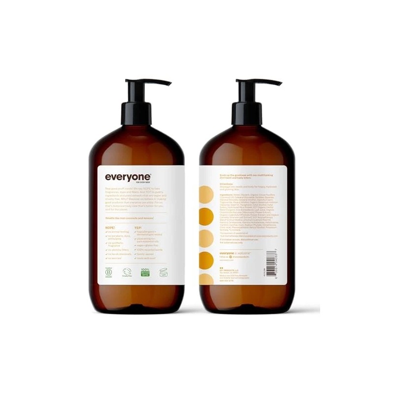 - Contains: (2) 32 Ounce 100% Recycled Plastic Bottles of Everyone Nourishing Coconut and Lemon Hand and Body Lotion. For a limited time, you may receive either bottle while we update our packaging. New Look, Same Great Product