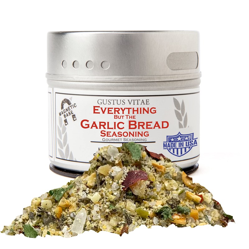 Everything But The Garlic Bread Seasoning | All Natural | Non GMO | 1.7 oz (48 g) | Gourmet Spice Mix | Small Batch | Artisanal Rub | Seasoning Pack | Magnetic Tin | Gustus Vitae | #848