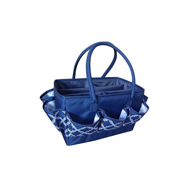 Everything Mary Craft Organiser Bag, Blue & White - Collapsible Caddy and Tote with Compartments for Sewing, Scrapbooking, Paper Craft, and Art - EVM12452-1