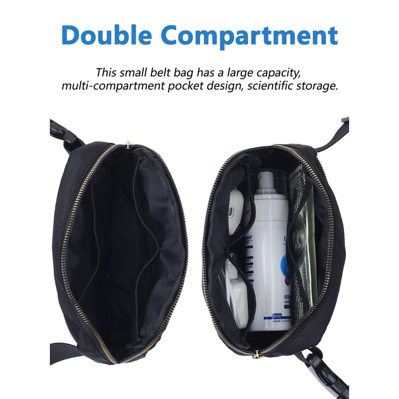 - Gran capacidad: bolsa de cinturón para todas partes de aspecto pequeño pero gran capacidad, se adapta fácilmente a teléfonos móviles, pañuelos, cosméticos, llaves y otros artículos personales. El diseño de bolsillo con cierre antirrobo en la parte posterior se diferencia de la riñonera monótona tradicional sin compartimentos.