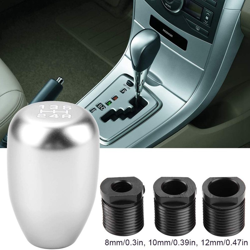 EVGATSAUTO Gear Shift Knob,5 Speed Manual Car Gear Shift Knob Shifter Lever Stick with 3 Adapters (8mm/10mm/12mm)(Silver) for Auto