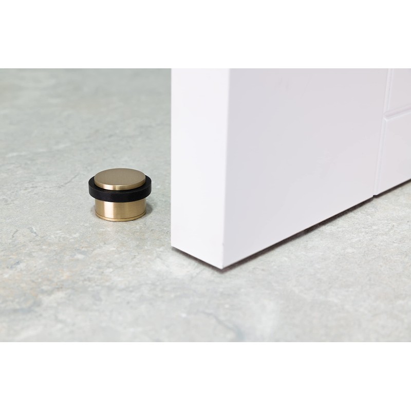 EVI | Adhesive Doorstop | Threaded Base | 0.8'' X 1.1'' | Natural Silicone | Brass Finished | Simple Fixation | 100% Functional | Mod. I-103/28 (Brass Mate - Black Rubber)